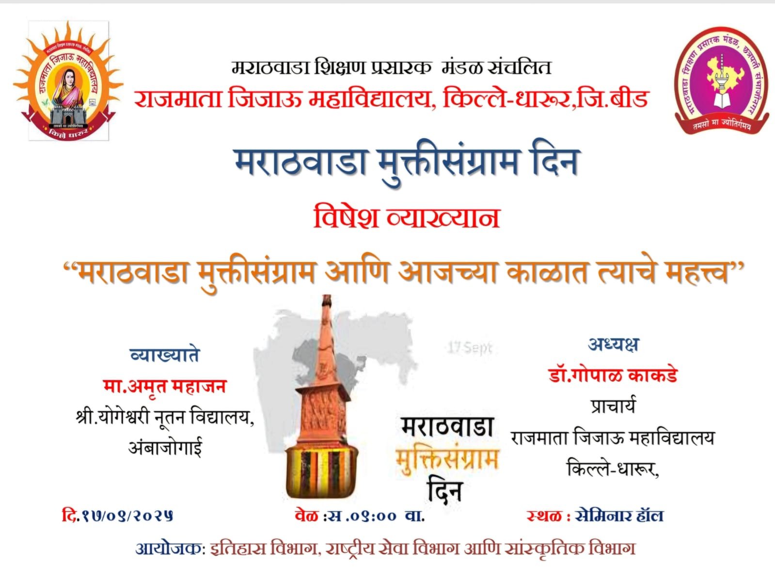 A very warm welcome to all of you in the family of Rajmata Jijau Mahavidyalaya, Kille Dharur, a prestigious and committed college of Marathwada Shikshan Prasarak Mandal and affiliated to Dr. Babasaheb Ambedkar Marathwada University, Chhatrapati Sambhajinagar, Maharastra.