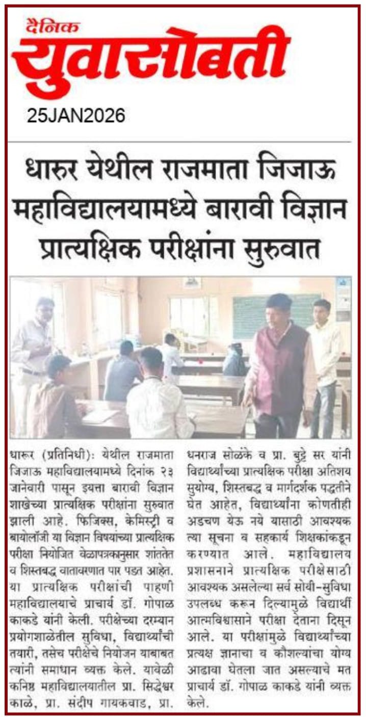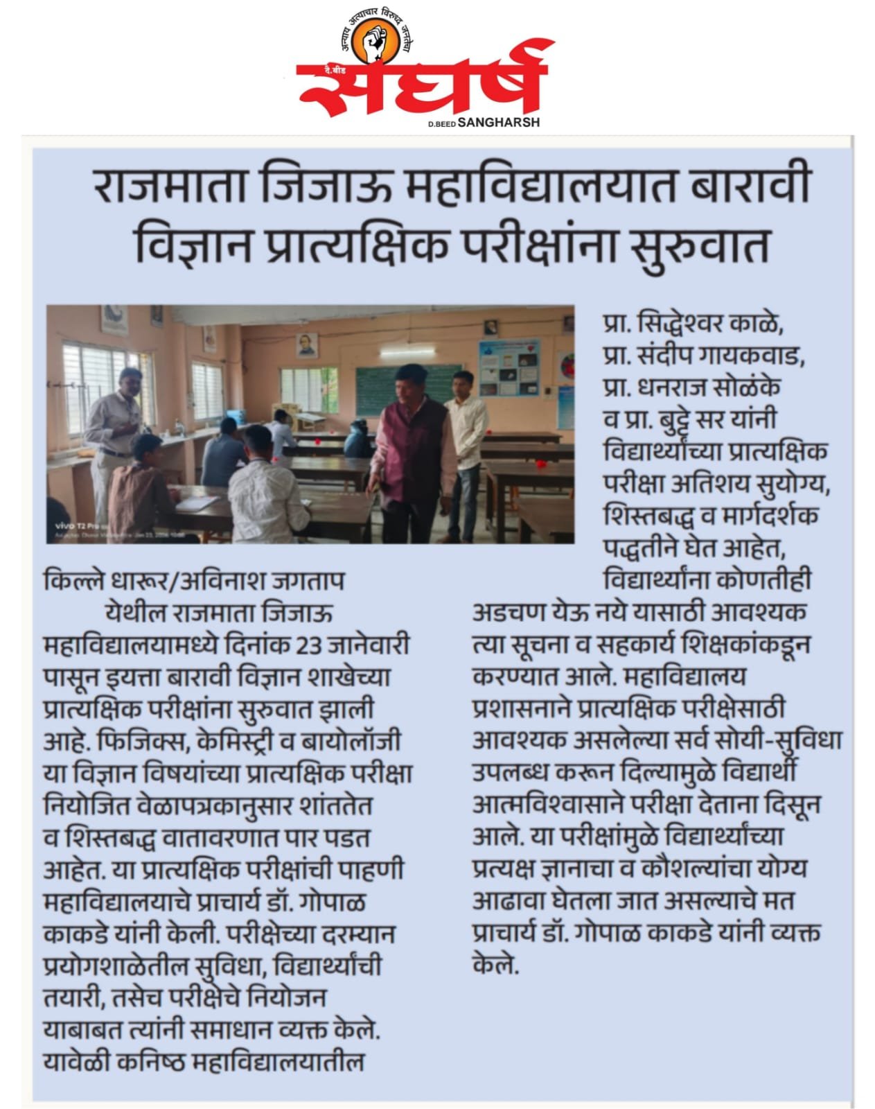 बारावी विज्ञान प्रात्यक्षिक परीक्षा 24/01/2026