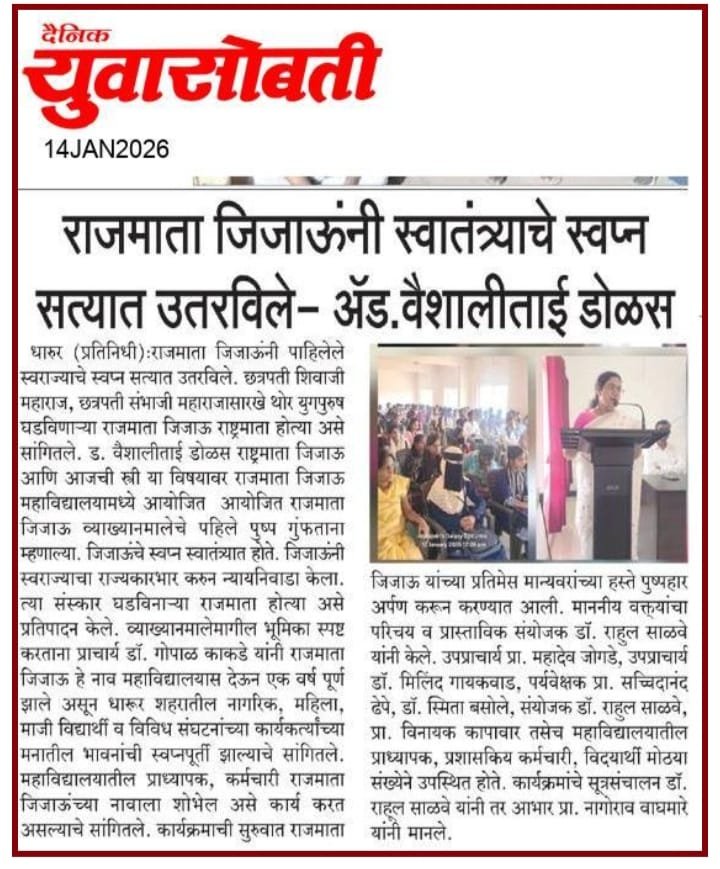 ॲड. वैशालीताई डोळस यांचे राजमाता जिजाऊ जयंती निमित्त विशेष व्याख्यान 13/01/2026