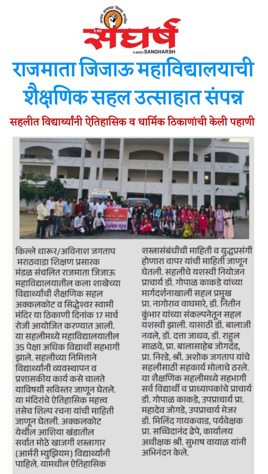 कला शाखेची शैक्षणिक सहल संपन्न 17/03/2026