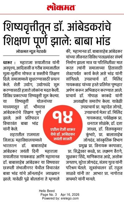 भारतरत्न डॉ. बाबासाहेब आंबेडकर जयंती व श्री बाबा भांड यांचे विशेष व्याख्यान 14/04/2026