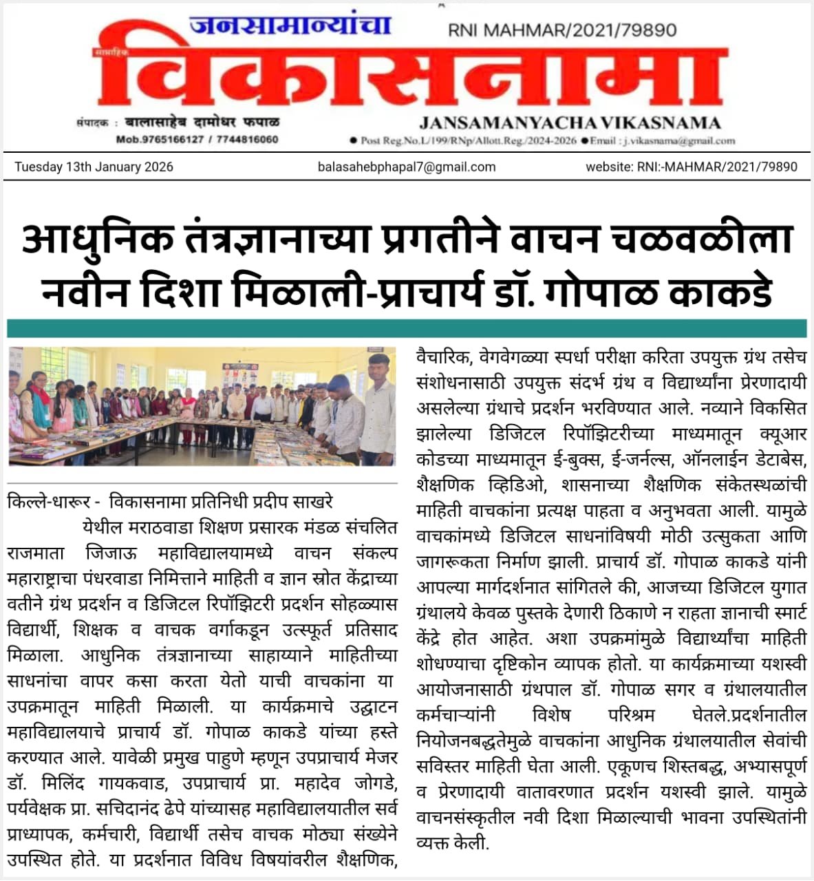 वाचन संकल्प महाराष्ट्राचा निमित्त ग्रंथप्रदर्शन व डिजिटल रिपॉझिटरी प्रदर्शन सोहळा 10/01/2026