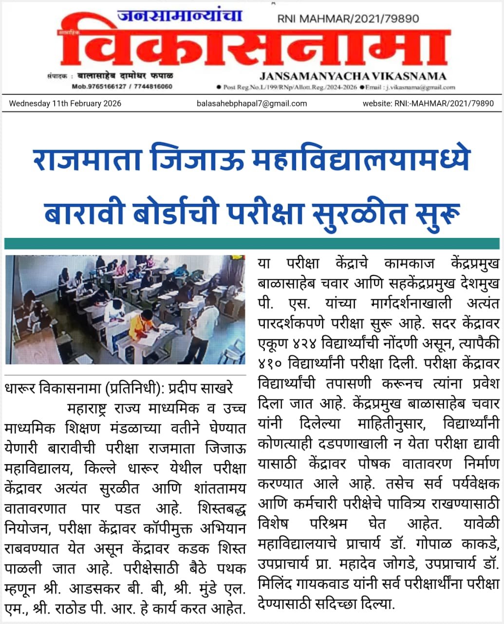 महाविद्यालयामध्ये बारावी बोर्डाची परीक्षा सुरळीत सुरू