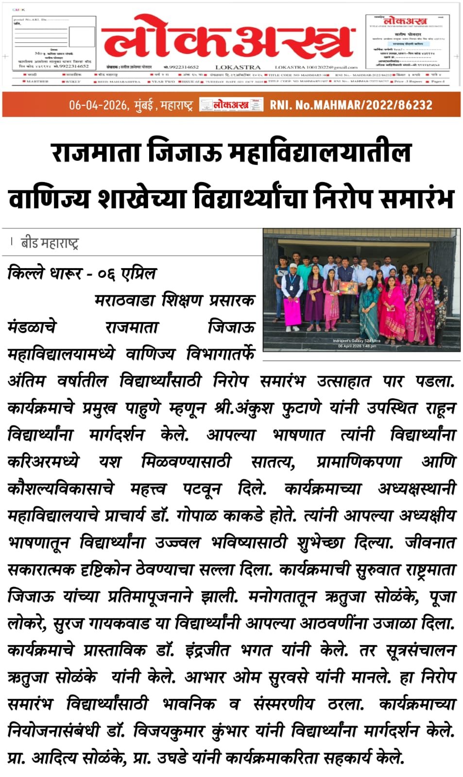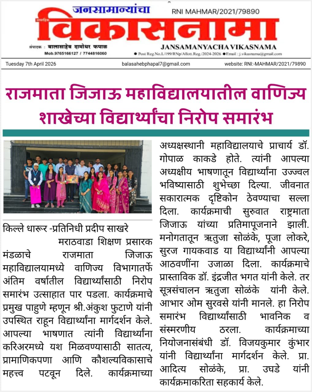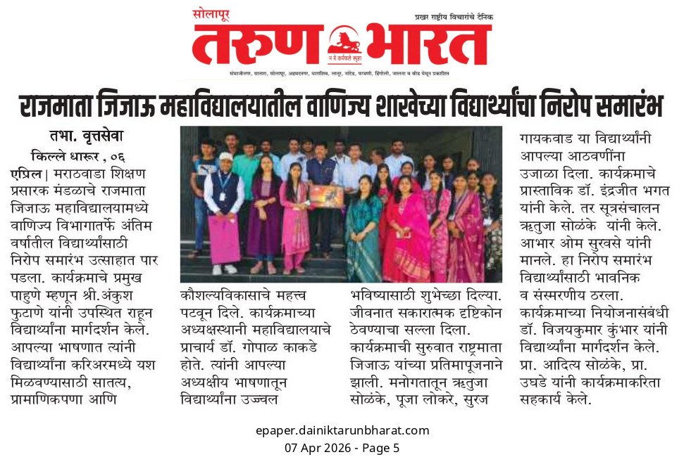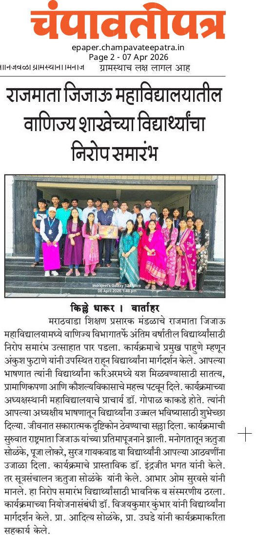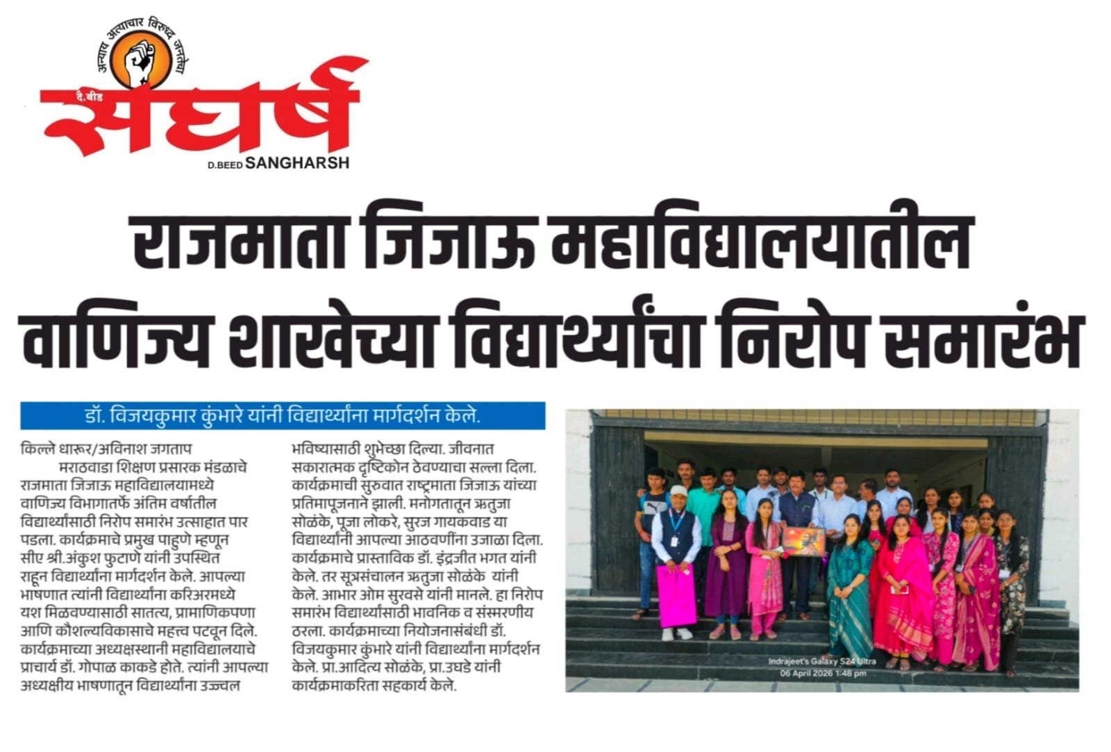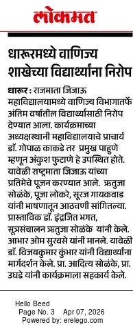 वाणिज्य शाखेच्या तृतीय वर्षीय विद्यार्थ्यांचा निरोप समारंभ 06/04/2026