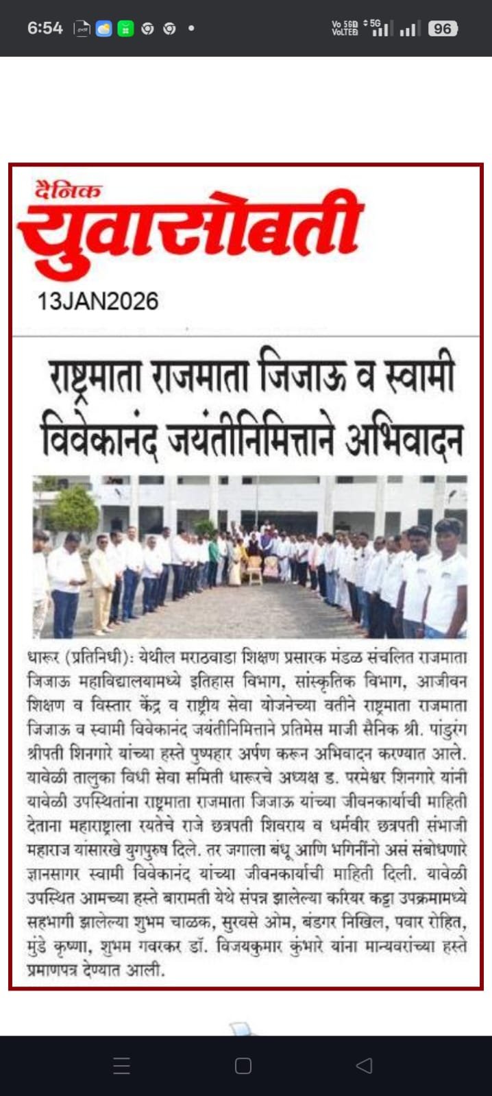 राजमाता जिजाऊ व स्वामी विवेकानंद जयंती निमित्ताने अभिवादन 12/01/2026