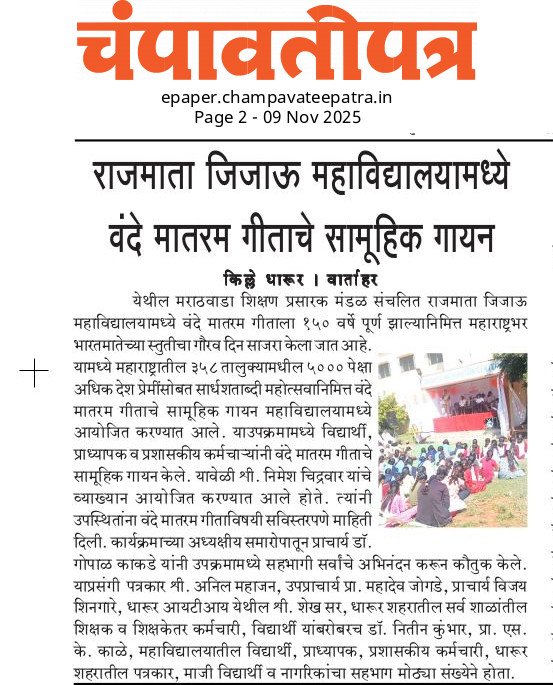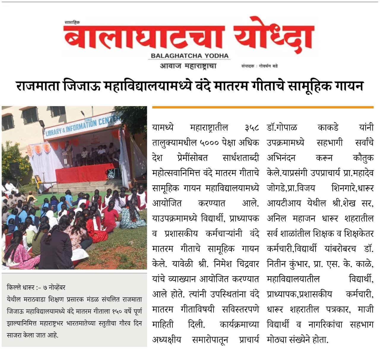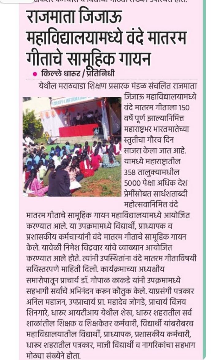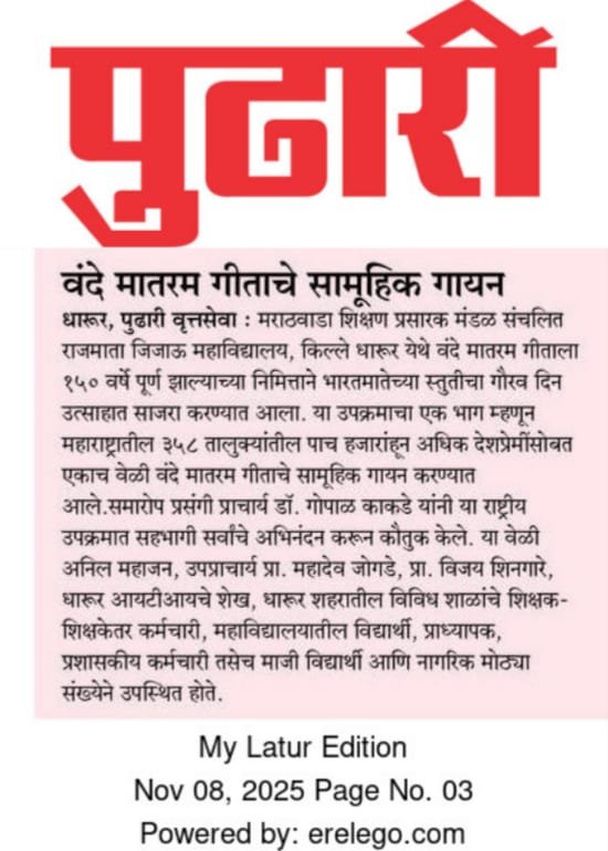 वंदे मातरम गीताचे सामूहिक गायन – 07/11/2025