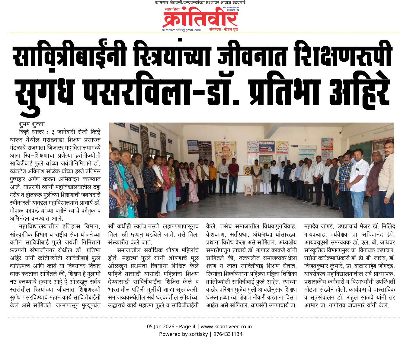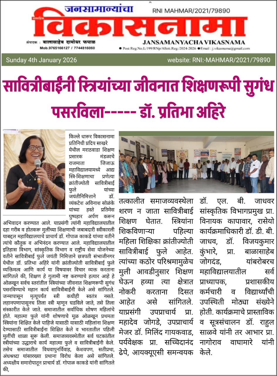 क्रांतीज्योती सावित्रीबाई फुले जयंती – 2026