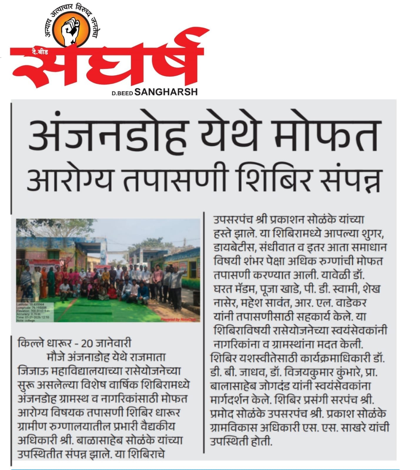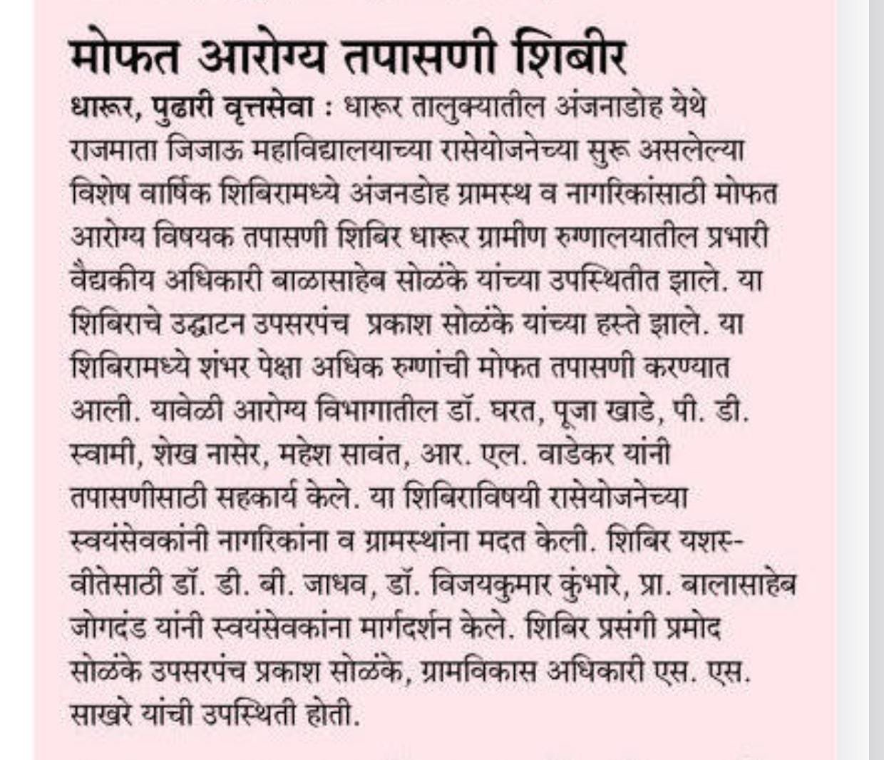 NSS - Health checkup camp on 21/01/2026