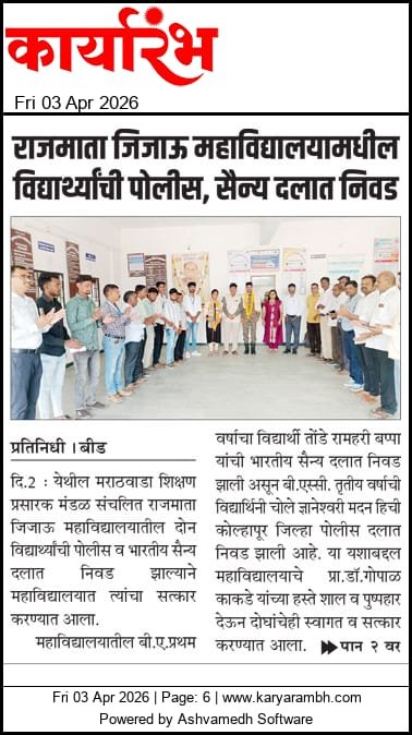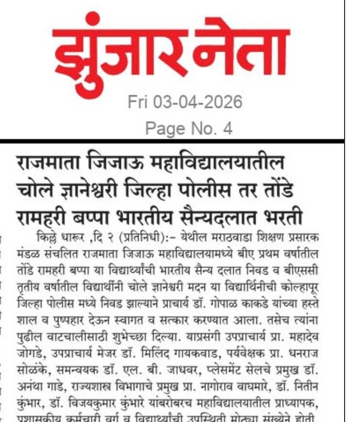 महाविद्यालयातील विद्यार्थ्यांची पोलीस, सैन्य दलात निवड 02/04/2026
