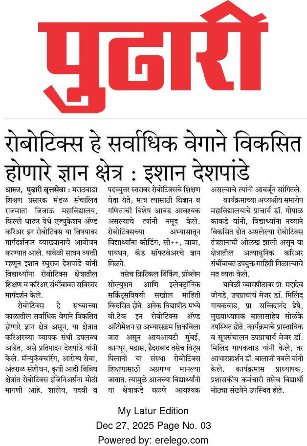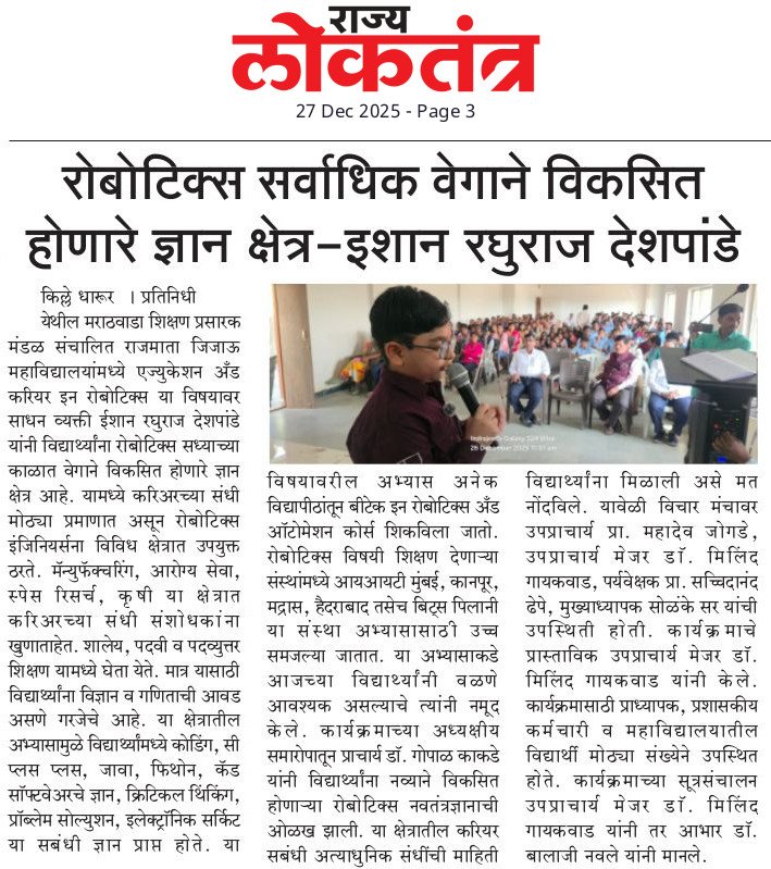 Special lecture on education and career in robotics held on 26/12/2025