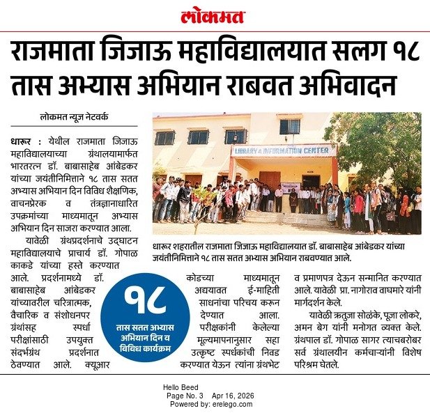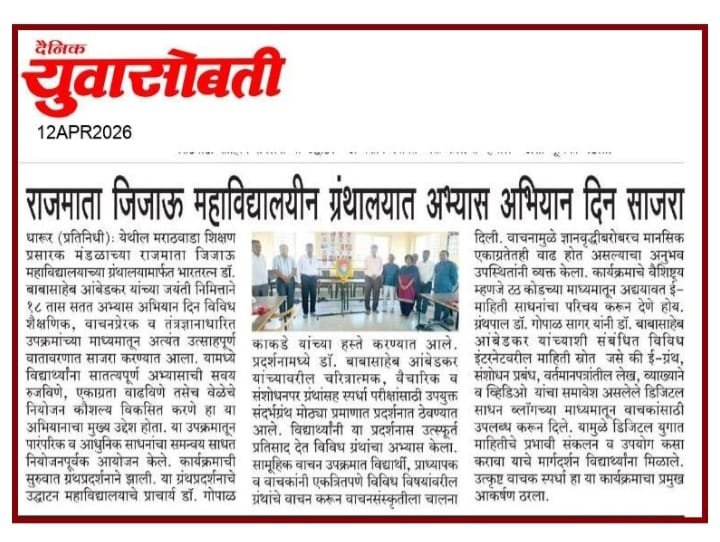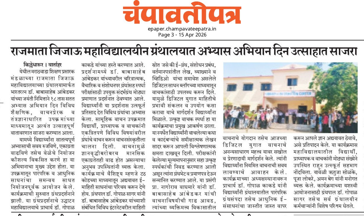 महाविद्यालयीन ग्रंथालयात अभ्यास अभियान दिन उत्साहात साजरा 11/04/2026