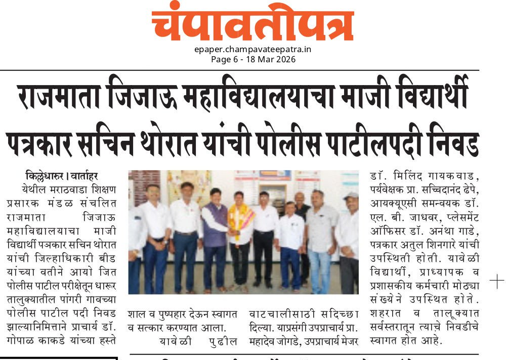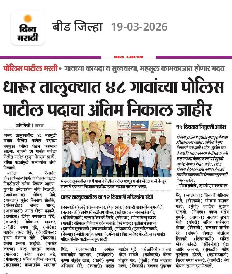 माजी विद्यार्थ्यांचे पोलीस पाटील परीक्षेत यश 21/03/2026